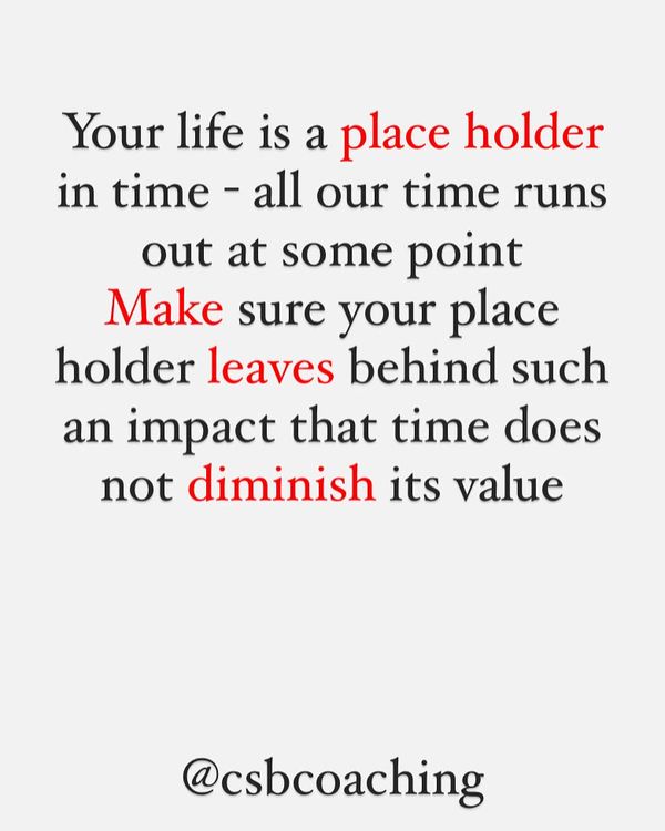 Go create the positive impact on others lives that will live on far longer we ever will